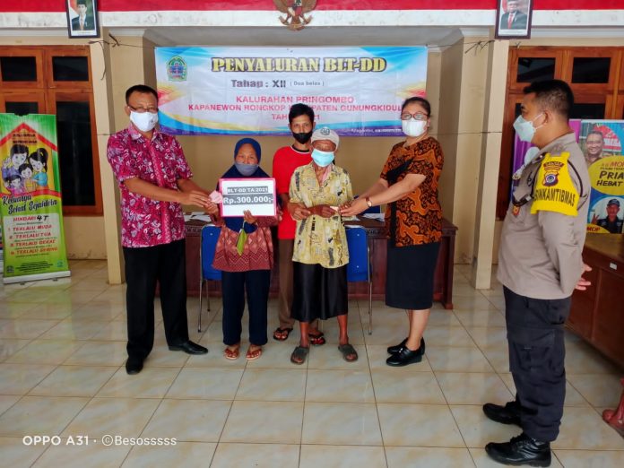 RONGKOP ( fakta9.com ) _ _// Penyaluran Bantuan Langsung Tunai Dana Desa bulan Desember atau bulan 12 ( dua belas ) di Kalurahan Pringombo telah terlaksana dengan aman dan sesuai prokes.