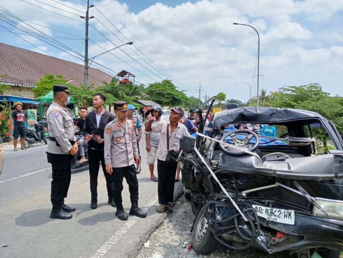 Adapun kendaraan yang terlibat dalam kecelakaaan tersebut ialah sebuah Bus nomor polisi AA 7574 OD dengan Suzuki Carry Pick Up nomor polisi AB 8342 WK.
