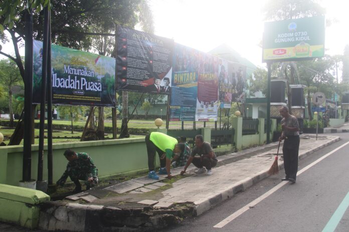 GUNUNGKIDUL, DIY (FAKTA9.COM)_ _// Dalam rangka memelihara kebersihan dan kenyamanan lingkungan kerja, Kepala Staf Kodim (Kasdim) 0730/Gunungkidul Mayor Cke Timotius Subanu memimpin langsung kegiatan kerja bakti atau korve pembersihan di lingkungan Makodim 0730/Gunungkidul, Jln. Kesatrian No. 03, Wonosari, Wonosari, Gunungkidul, Jum’at (20/2/2026).