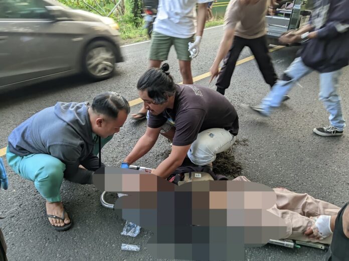 “Sepeda motor Suzuki Smash oleng ke kanan sehingga terjadi kecelakaan tunggal.” Jelasnya.
