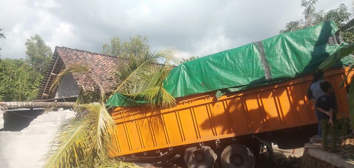 Nglipar(Fakta9.com)_ _//Nasib apes di alami keluarga Sumiyati(52Th) warga Padukuhan Blembeman RT02/RW01,Kalurahan Natah,Kapanewon Nglipar pasalnya pada pukul 06.30 WIB rumah yang di tinggali bersama dua orang anaknya di seruduk truk tronton yang mengalami rem blong (31/12/2021).