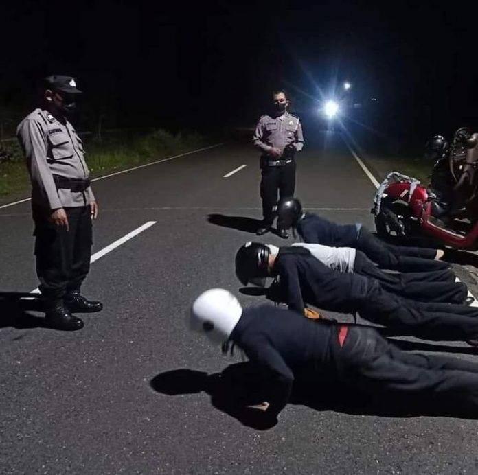 “Mereka diberikan edukasi serta pembinaan fisik berupa Push Up dan selanjutnya diarahkan pulang ke rumah masing-masing,” Jelas AKP Hajar Wahyudi.