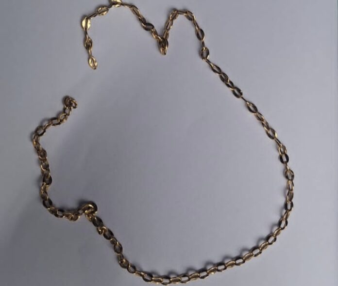 Namun demikian, kalung tersebut tak berhasil dibawa kabur oleh pelaku lantaran kalung tersebut terjatuh di pundak korban.