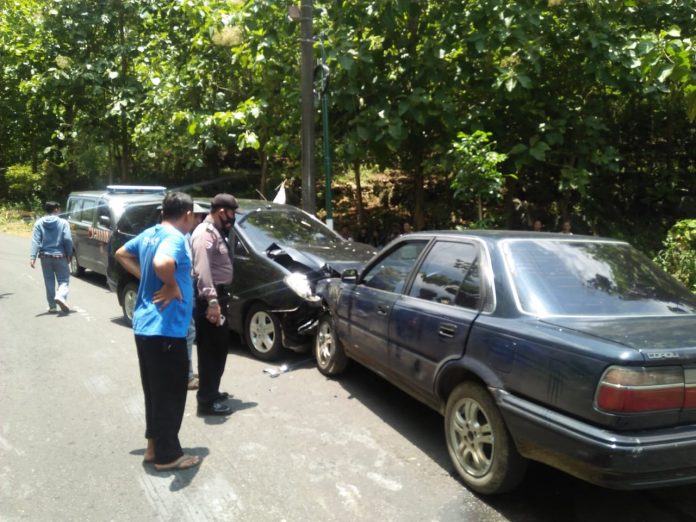 Tepus, (fakta9.com)//–Kecelakaan lalu lintas yang melibatkan mobil Toyota Corolla sport nopol AB-1676-HT dengan sebuah mobil Toyota Innova nopol G-9238-PC terjadi di wilayah Kapanewon Tepus, tepatnya di Jl. Wonosari -Tepus, Padukuhan Pule Gundes, Kalurahan Sidoharjo pada Selasa (02/03/2021).