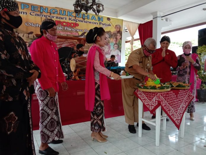 Panewu Patuk saat melakukan pemotongan tumpeng sebagai tanda pengukuhan FCKP (foto.doc.fakta9)