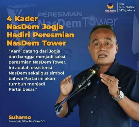 Ternyata peresmian Nasdem Tower juga dihadiri oleh Anggota Dewan Perwakilan Rakyat Daerah (DPRD) Gunungkidul sekaligus Sekertaris DPW Nasdem DIY yaitu Suharno.