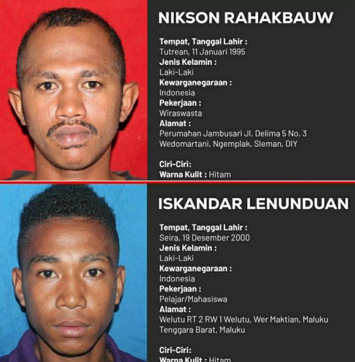 Dilansir dari halaman resmi media sosial Polda DIY, identitas dua pria yang saat menjadi buron polisi itu ialah Nikson Rahakbauw (28), laki-laki yang berprofesi sebagai wiraswasta, alamat tempat tinggal di Perumahan Jambusari, Jalan Delima 5 No 3, Ngemplak, Sleman.