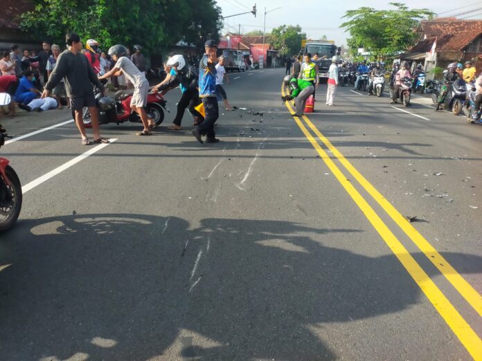 KULONPROGO, DIY (FAKTA9.COM)_ _// Tabrakan antara sepeda motor Honda Scoopy nomor polisi AB 5799 OR dengan Sepeda Motor Yamaha Jupiter MX nomor polisi AB 6851 LS terjadi di Jalan Jogja-Wates Km 17,5 tepatnya di Padukuhan Padukuhan Klebakan, Salamrejo, Sentolo, Kulonprogo, Rabu (01/10/2025) pukul 06.45 WIB.