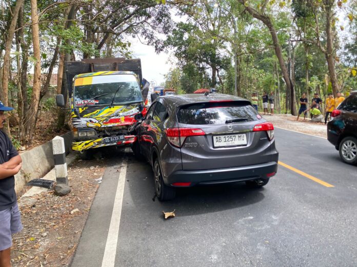 GUNUNGKIDUL, DIY (FAKTA.COM)_ _// Adu banteng antara kendaraan Truk nomor polisi AB 8433 RB dengan mobil Honda HR-V nomor polisi AB 1257 MV terjadi di Jalan Raya Wonosari-Yogyakarta tepatnya Di Padukuhan Gading III, Gading, Playen, Minggu (01/09/2024) pukul 13.00 WIB.