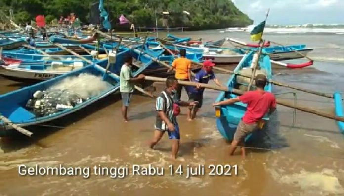 TANJUNGSARI_(Fakta9.com)__//Gelombang setinggi 14 feet atau sekitar 3.5 meter membuat kapal-kapal nelayan di Pantai Baron, Kabupaten Gunungkidul mengalami kerusakan ringan.