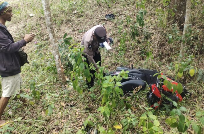 Sesampainya di lokasi kejadian posisi jalan menurun tajam, diduga rem motor tidak berfungsi sehingga tiba-tiba oleng dan jatuh masuk ke dalam jurang sedalam 20 meter.