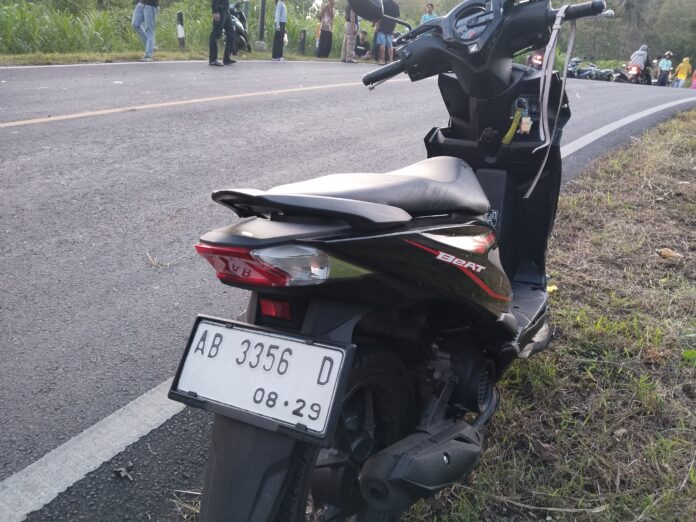 Setibanya di lokasi kejadian posisi jalan menikung, sepeda motor tersebut hilang kendali sehingga berjalan melewati garis marka jalan.