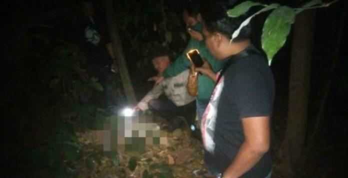 Meresa curiga, Tohirin dan temannya berusaha menggali tanah tersebut. Ternyata benar saja, setelah mencapai kedalam 30 Cm, saksi menemukan kain putih yang basah serta bagian kaki bayi.