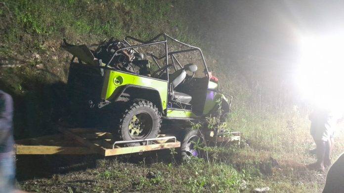 PURWOSARI (Fakta9.com)_ _//Satu kendaraan jeep yang membawa rombongan wisatawan masuk jurang di Padukuhan Gabug, Kalurahan Giricahyo, Purwosari, Gunungkidul, Sabtu, (03/11/2022) kemarin.