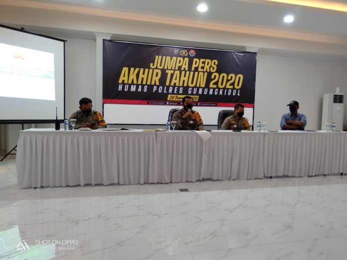 Wonosari, (fakta9.com)__Jajaran Kepolisian Resort Kabupaten Gunungkidul pada saat pelaksanaan Jumpa Pers pada Rabu (30/12/2020) menyatakan terjadi peurunan tingkat kriminalitas yang terjadi selama 2020 ini.