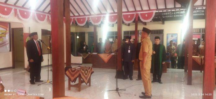 Upacara pelantikan tersebut digelar di Aula Balai Kalurahan pada hari Jum’ at (24/03/2023) pukul 14.00 WIB.