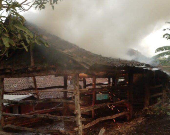 Setelah api menyala, korban pun pergi masuk rumah, namun naas beberapa menit kemudian muncul kepulan asap dari atas kandang.