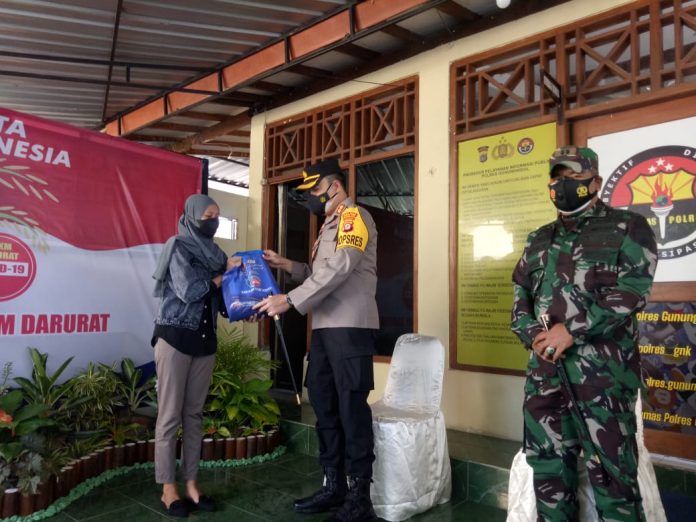 Kapolres Gunungkidul,AKBP Aditiya Galayudha,S.I.K.,M.T menyampaikan bahwa Pada kesempatan ini TNI/Polri melaksanakan penyaluran beras bantuan dari pusat, adapun bantuan bersumber dari Menko Maritim, Sekertariat Negara dan Polri, dalam hal ini pemberian bantuan berupa beras yang akan dibagikan kepada masyarakat yang terdampak PPKM dan masyarakat yang tidak menerima bantuan seperti PKH ataupun bantuan lainya