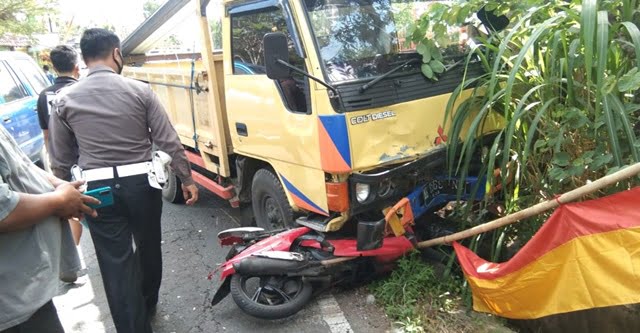 Namun naas pada saat bersamaan melaju kendaraan Truk jenis Mitshubishi nopol AB 8568 NK yang melaju dari arah berlawanan dengan kecepatan sedang. Karena jarak yang terlalu dekat truk tersebut menabrak sepada motor Yamaha Mio hingga terserat beberapa meter.