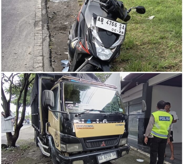 BANTUL, DIY (FAKTA9.COM)_ _// Tabrakan antara sepeda motor Honda Beat nomor polisi AB 4766 SA kontra Truck nomor polisi AD 8298 YW terjadi di Jalan Imogiri Timur tepatnya di Padukuhan Wonokromo, Wonokromo, Pleret, Bantul, Sabtu (21/02/2026) pukul 07.30 WIB.