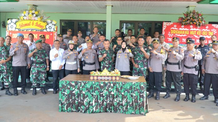 Dengan membawa nasi tumpeng yang bertuliskan “Dirgahayu TNI ke-80”, Kapolres bersama jajaran memberikan ucapan selamat dan doa agar TNI semakin profesional dan di cintai rakyat.