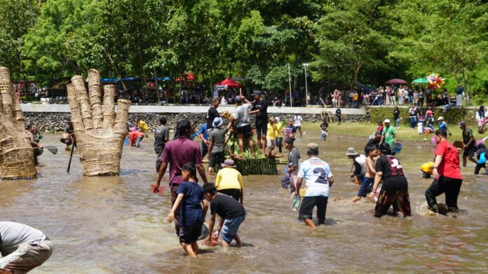 Antusiasme masyarakat mengikuti Edrek Se-Kampung pun tinggi terlihat dari seluruh elemen turun bersama-sama ke telaga dari yang muda hingga yang tua.