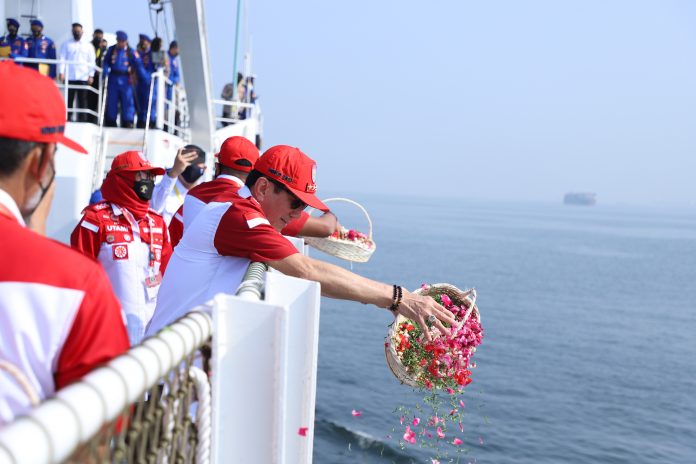 (Fakta9.com)___//Mengenang jasa para pahlawan yang telah membaktikan hidupnya untuk bangsa dan negara, Kementerian Hukum dan Hak Asasi Manusia melakukan tabur bunga di perairan teluk Jakarta. Menggunakan kapal KP Baladewa-8002, rombongan kemenkumham berangkat dari Markas Komando Korps Kepolisian Air dan Udara Badan Pemeliharaan Keamanan Kepolisian Republik Indonesia (Korpolairud Baharkam Polri), menuju perairan Teluk Jakarta, Selasa pagi (26/10/2021).