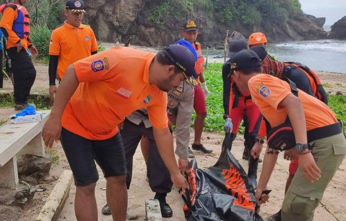 GIRISUBO (Fakta9.com)_ _// Korban laka laut di Pantai Jungwok Kalurahan Jepitu, Girisubo, Gunungkidul, akhirnya ditemukan, Senin (07/11/2022).