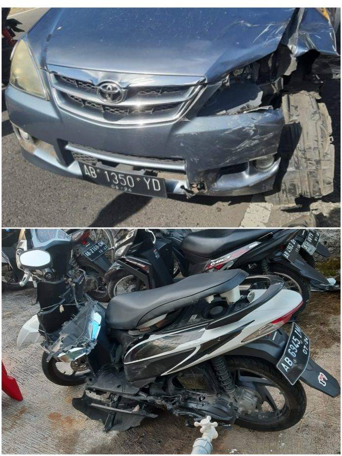Disaat bersamaan, dari lawan arah melaju kendaraan Toyota Avansa AB-1350-YD yang dikemudikan oleh Sunaryo (58) warga Padukuhan Tawarsari, RT 03, RW 18, Kalurahan Wonosari, Kapanewon Wonosari.