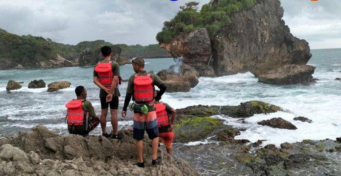 GIRISUBO (Fakta9.com)_ _// Dimas Ismoyo Nugroho (23) seorang wisatawan asal Padukuhan Jragung, Kalurahan Jogotirto, Berbah, Sleman, hilang terbawa arus ombak ke tengah laut lepas Pantai Jungwok, Kalurahan Jepitu, Girisubo, Gunungkidul.
