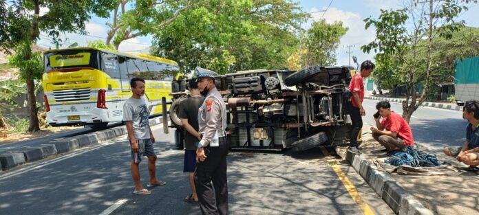 Mengetahui hal itu Bernardus lantas melakukan pengereman sehingga menyebabkan truk box yang dikemudikannya terbalik.
