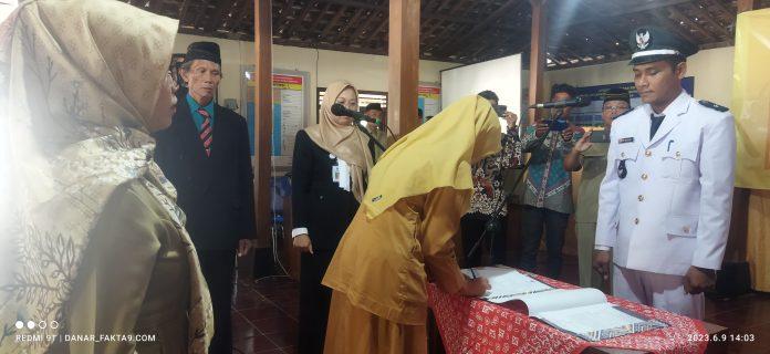 Paliyan (Fakta9.com)_ _// Bertempat di kantor Kalurahan Grogol Kapanewon Paliyan telah terlaksana upacara pelantikan dan pengambilan sumpah janji dua pamong kalurahan yaitu Dukuh Padukuhan Karangmojo B dan Jagabaya, Jum’ at (09/06/2023) siang.