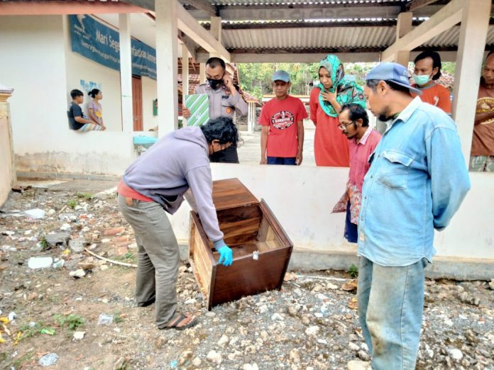 Saat itu saksi hendak pergi untuk membersihkan kantor Samsat online yang berada di komplek kantor Kalurahan Kemiri. Setibanya dilokasi, Sadiko dikejutkan adanya sebuah kotak kayu yang berada di belakang kantor.