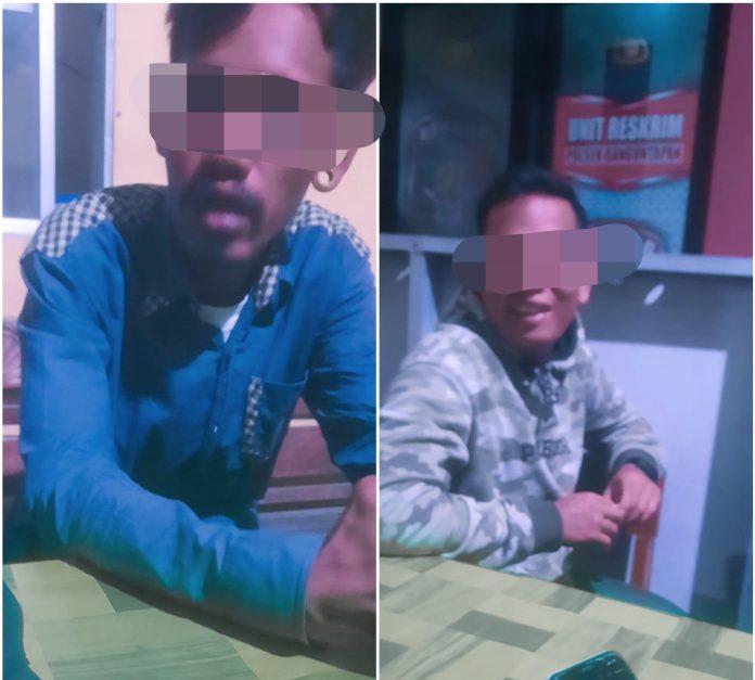Sesampainya di simpang tiga Komitrando, kedua pemuda tersebut dihentikan oleh Pokdar Kamtibmas Mitra Polri.