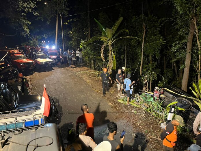 Bantul (Fakta9.com)_ _// Sebuah mobil Elf nomor polisi N 7602 TA warna hitam terperosok masuk jurang di Jalan Dlingo – Wonolelo tepatnya di Padukuhan Cegokan, Wonolelo, Pleret, Bantul, Sabtu (09/12/2023) pukul 14.00 WIB.