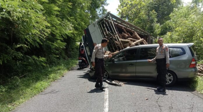 “Truk bagian Bak menabrak body depan mobil Livina. Dan ada beberapa muatan kayu yang juga menimpa kaca depan mobil.” Jelasnya.