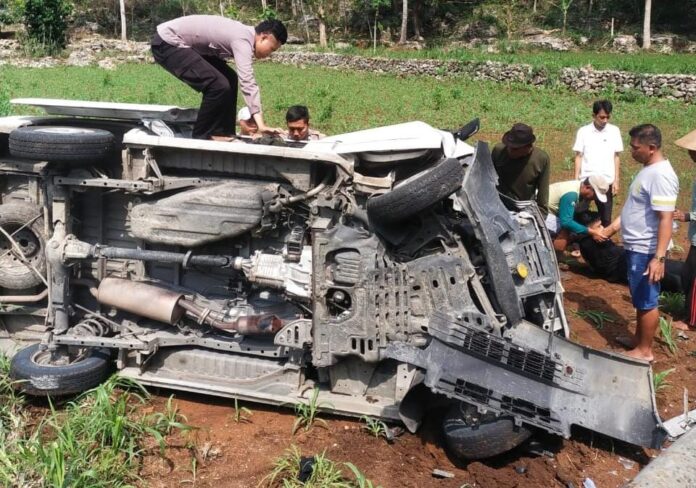 GUNUNGKIDUL, DIY (FAKTA9.COM)_ _// Sebuah mobil Daihatsu Grand Max nomor polisi B 9776 PCV yang dikemudikan Maulana Wahyu Ramadhon (24) warga Perum Doko Sragi J/8, Doko, Ngasem, Kediri, Jawa Timur, mengalami kecelakaan tunggal di Jalan Bedoyo – Baran Km 04 tepatnya di Bulak Ngrombo Padukuhan Ngrombo, Semugih, Rongkop, Rabu (06/11/2024) pukul 09.00 WIB.