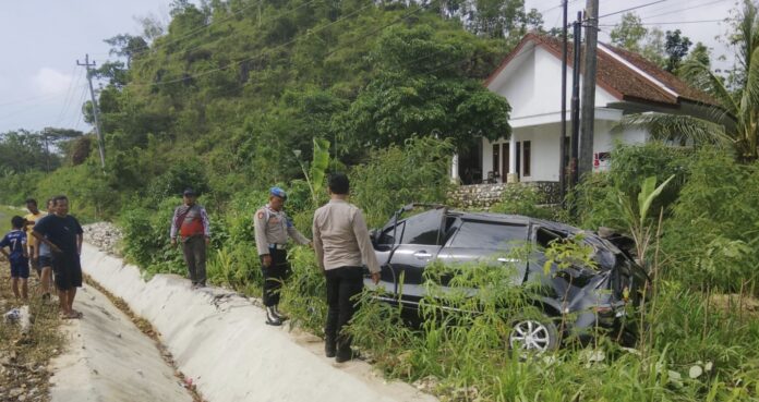 Mobil Toyota Avanza Terbang Lewati Parit di JJLS Girisubo