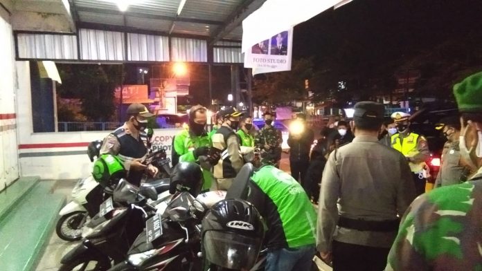 Dalam giat tersebut tim gabungan memberikan imbauan aturan PPKM Darurat kepada pedagang dan sopir ojol.