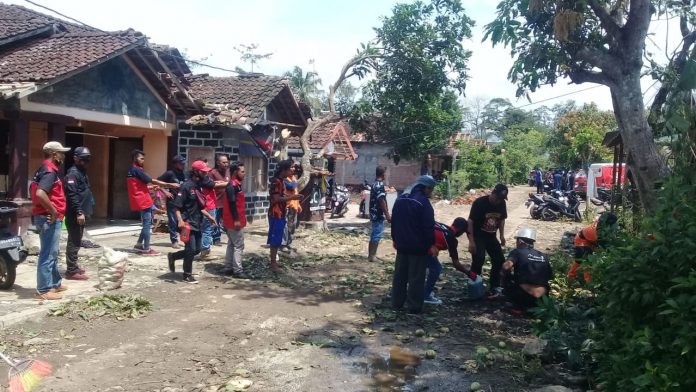 Nglipar, (fakta9.com)__Pasca diamuk oleh angin puting beliung di Padukuhan Kedungranti, Kalurahan Nglipar, Kapanewon Nglipar, saat ini BPBD, TAGANA, anggota TNI dan POLRI, beserta relawan serta dibantu masyarakat sekitar melakukan giat pengkondisian wilayah pada Jum’at (6/11/2020).
