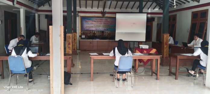 Prosesi ujian tertulis dan praktek itu dilaksanakan di Aula Balai Kalurahan Pringombo, Sabtu (29/11/2025) siang.
