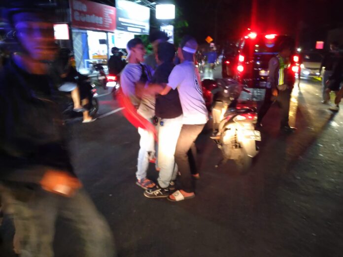 “Saat itu pengendara sepeda motor Yamaha Mio bersama pemboncengnya jatuh ke aspal.” Ucapnya.