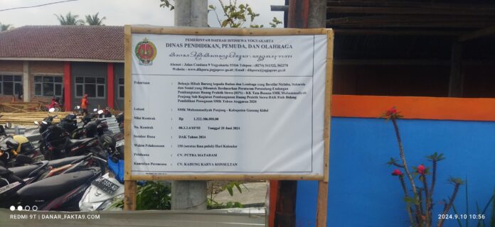 Namun hal tersebut tidak terlihat dalam pembangunan gedung SMK Muhammadiyah Ponjong yang dikerjakan oleh CV Putra Mataram dengan anggaran sebesar Rp 1,3 Miliyar.
