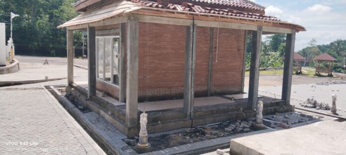 Tampak sejumlah paving blok yang belum rampung di pasang dan beberapa bangunan juga terlihat masih belum 100% selesai dikerjakan.