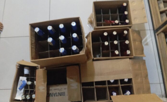 Dari hasil penggeledahan menyeluruh di Outlet 23, petugas menyita total 60 botol minuman keras dengan rincian sebagai berikut, 24 botol Bir Guinness, 12 botol Anggur Merah (Kadar alkohol 14%), 12 botol Anggur Kolesom (Kadar alkohol 19%), 9 botol Anggur Ketan Hitam dan 3 botol Bir Bintang.