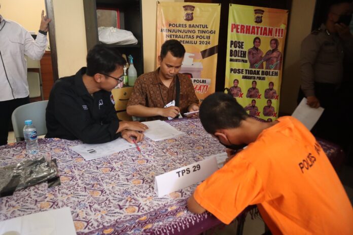 Bantul, DIY (Fakta9.com)__//Sebanyak 42 orang tahanan rutan Polres Bantul dan Polsek Jajaran ikut mencoblos pada pemilu tanggal 14 Februari 2024.