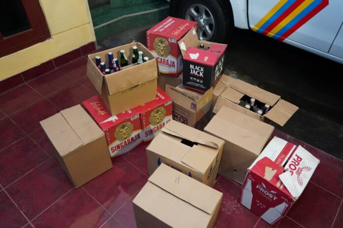 Dalam operasi tersebut, polisi berhasil mengamankan ratusan botol minuman keras berbagai jenis dan golongan.