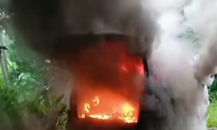 Satu Unit Mobil Hangus Terbakar di Jalan Perkampungan