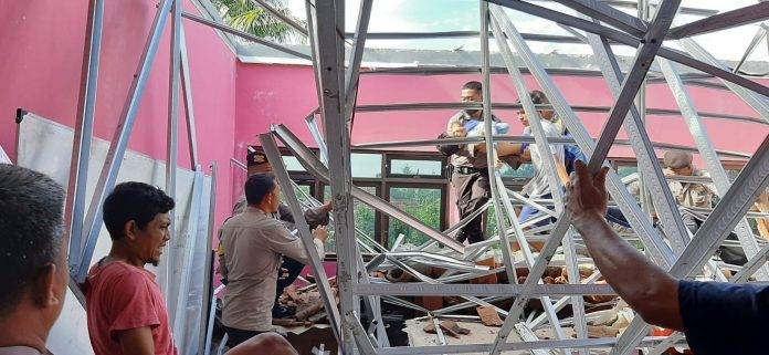 “Penyebab roboh dimungkinkan karena bangunan tidak sesuai konstruksi. Kerangka atap yang terbuat dari baja ringan tidak mampu menahan beban genting yang berat dan basah.” Jelas Kapolsek Playen.