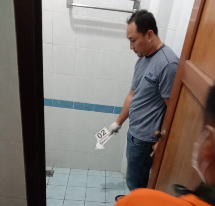 “Beberapa rekan korban kemudian mendobrak pintu kamar mandi dan mendapati korban sudah meninggal dengan posisi tergeletak.” terangnya.